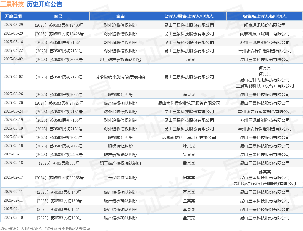 本站消息,根据天眼查APP显示,近日公布了一则昆山三景科技股份有限公司作为原告/上诉人的开庭公告,详细内容如下: